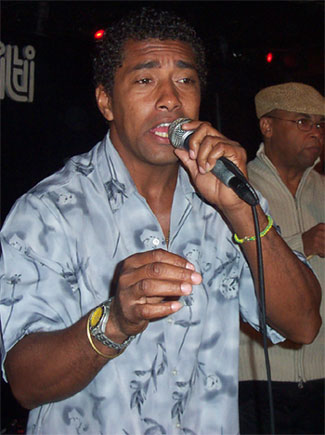 Eduardo Carazana, the güirero was playing congas most of the night and did a bang up job, pardon the expression.. The timbales are played by Luis Álvarez and he was smokin' all night long. Unfortunately, as usual it was almost impossible to get a picture of most of the musicians from in front of the stage because the singers are always "in the way". But you can get a glimpse if you check out the video clip and of course what's most important is hearing the musicans, not seeing them.