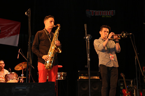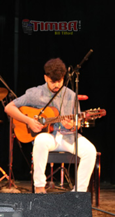 ENGLISH: This portion of the competition, which took place during the morning, was for soloists of 16 to 20 years of age. They were permitted to be accompanied by a group that did not exceed eight musicians with no age limits on the accompanists, and improvisations were permitted only for the contestant. Each soloist was required to interpret two themes, one a Jazz "standard", and the other free choice. Some of the most commonly-recognized Jazz standards in this session were: The first soloist, Ángel Alexander Gómez Sanchez, a saxophonist, interpreted some Charlie Parker; the second, Claudio González Hernández, a flautist, included John Coltrane's Naima; another, a tenor saxophonist, included Body and Soul; a tresero played Spain by Chick Corea and Besame Mucho.