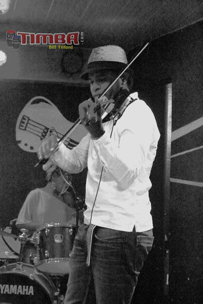 ENGLISH: Julio Valdés Fuentes is one of the very best Jazz violinists in Cuba, and at one time or another, I have heard him play everything from the standard Cuban styles to swing violin a la Stephane Grappelli to fusion-oriented styles a la Jean Luc Ponty. I have also seen him in different settings - he often performs with Mezcla, he works with the almost-all-female group Canela, and he has his own project which was performing at La Zorra y el Cuervo, one of the oldest and best Jazz clubs in Havana, on the night that I took these pictures.