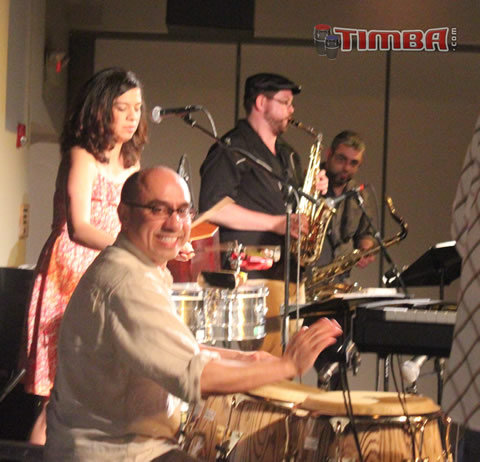 The Latino Arts performance brought on the full band and also opened with some Afrocuban material but featured much more of the full scope of the bands extensive range of influences. Many of the pieces from their most recent (and excellent) CD Mango were featured. Some of the many highlights included the funk (with just a dash of bugalu) cumbia Ernestico , a funk cinco, a rousing Plena Blue and a nueva trova-type song Algun Día. In addition to the songs that overtly evoke Andean motifs, Alex's compositions often subtly weave interesting elements from his roots into other styles (the OTS performance included a lot of covers, but the Latino Arts performance was mostly original material) as well as a strong dose of Latin Funk. The saxophones also had an opportunity to show their Jazz chops during the Latino Arts concert.