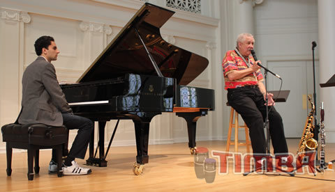 Pictured in the workshop photos are: Paquito D'Rivera, Alexander Brown (piano) and young students Daniel Mills, Jake Landry and Riley Morgan