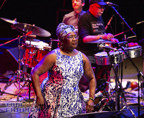 John Santos, internationally respected percussionist, band leader, composer, educator and much more brought a septet to the festival this year and played to a completely full theater. The band included John on percussion, Orestes Vilató on timbales and bongo, Saul Sierra on bass, Dave Flores on drum set, Marco Díaz on piano and trumpet, José Roberto Hernández on guitar and vocals and amazing Bobi Céspedes on vocals.