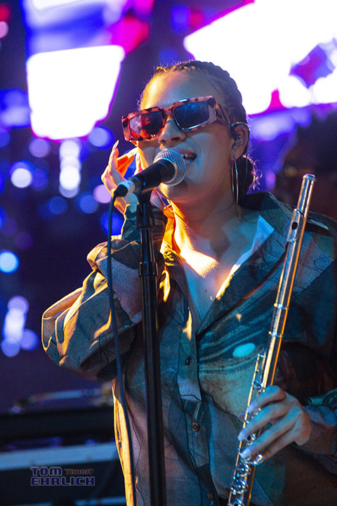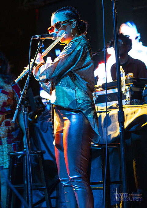 Elena Pinderhughes born and raised in Berkeley, California has been performing as a flutist since her pre-teens. She currently resides in NYC and has developed into one of the best young jazz flutist as well as becoming an excellent vocalist. She has performed with an impressive list of well known musicians such as Herbie Hancock, Christian Scott, Robert Glasper and many others. She is destined for greatness. Like Keyon Harrold, Elena doubled as a bakc up singer and flutist.