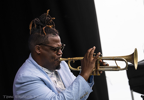 The set presented intense and moving music where the crowd seemed to respect the music and Keyon's social justice themes. I saw another side of Keyon after his set completed and I went back stage to ask him some questions and help a young college student get acces to him so she could get some questions answered. The college student and I waited for our turn while he was interviewed by a series of media people and young people. During this whole time Keyon was warm, respectful and made sure he responded to everyone's inquiries. Besides being a wonderful musician, composer and band leader, he is also a compasionate and caring individual who has gained my respect on all levels.