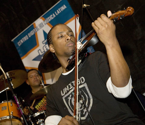Jose on drums, JC on violin, El Niche on trumpet, Jeáns on sax and Mipa directing the band