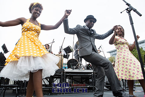 Ray Moisa under the black hat, he and his wife Linda Lucero are primarily responsible for free concerts at Yerba Buena Gardens.