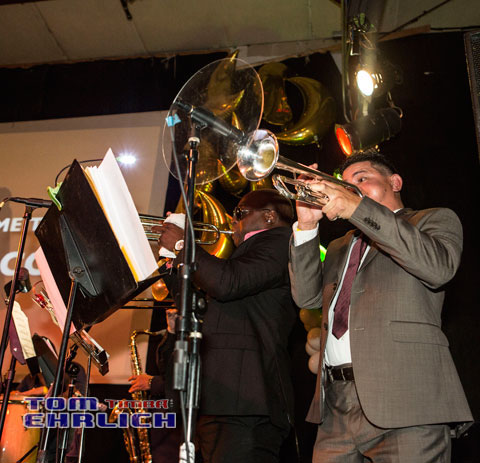 Yanel congas, Evelio Roque sax, Carlos Hernández trombone